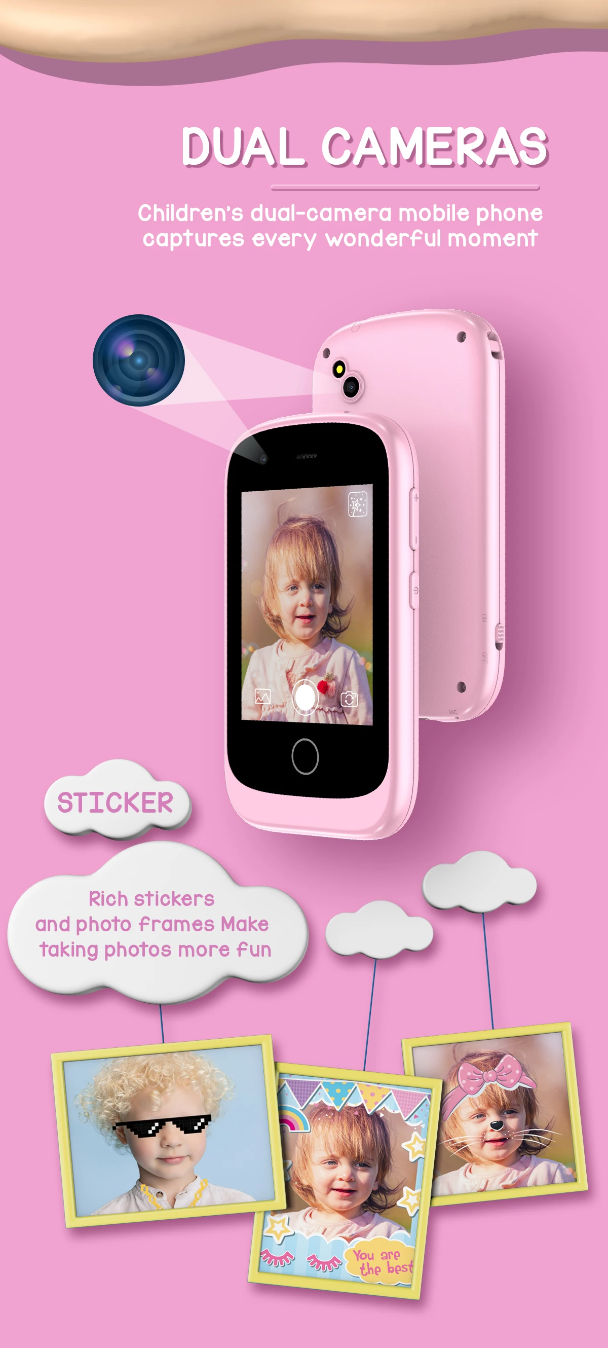 Front and Rear Camera Resolution:0.3MP /Take Photo (20 stickers+16 photo frame)/Photos